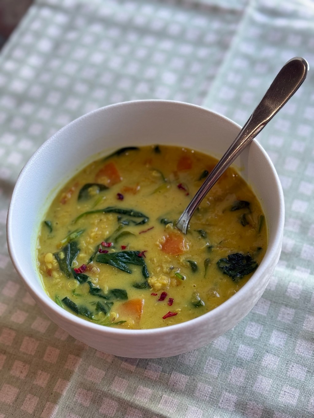 - Lastly add your spinach and let it cook through. If your soup feels to thick for you, you can add water to it.