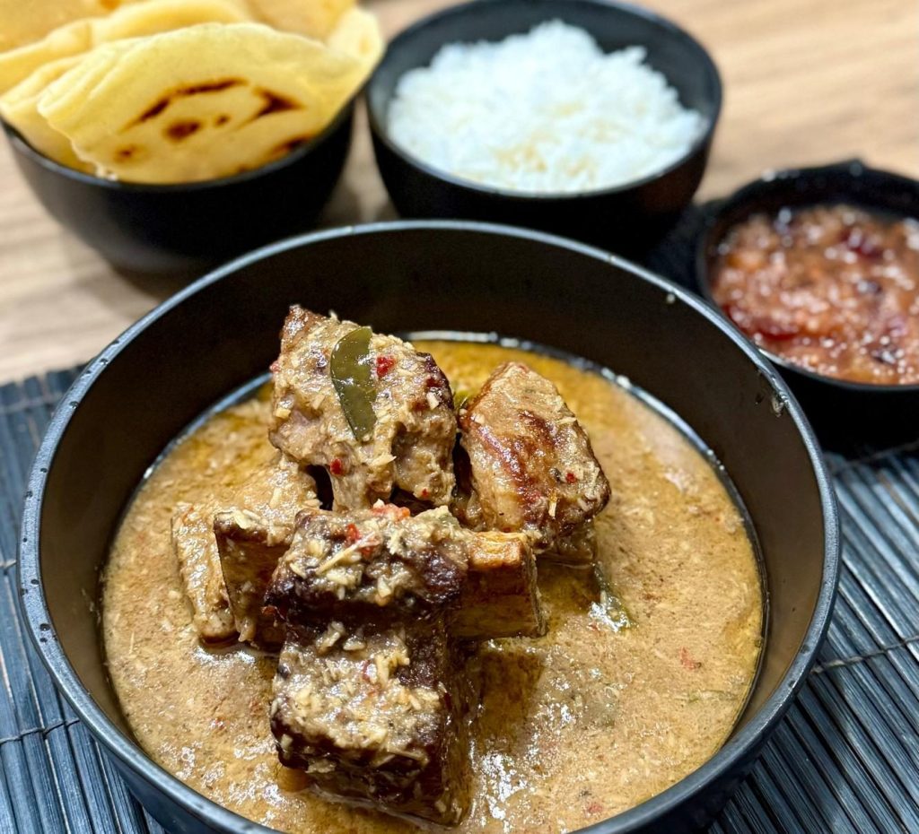 - Add the Tamarind, Sugar and Coconut and stir for another 1-2 minutes before adding the short rib and the rest of the ingredients. Stir through.