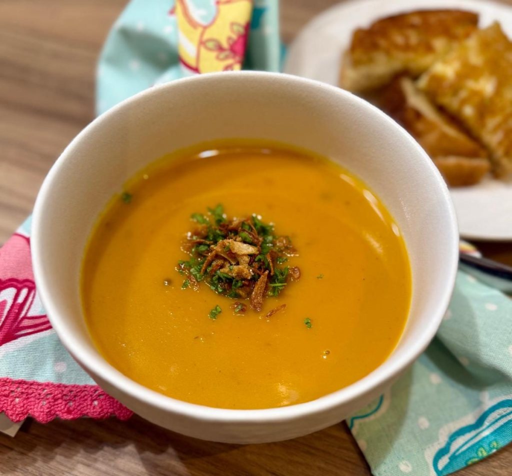 With Spring slowly showing its beauty between all the rainy days you still need something warming and yet light to have for dinner, so I am ending my curry series with this butternut soup with a little curry twist. Butternut soup is one of those fallback staples that never disapoints that even the little fussy eaters in your house might enjoy a few helpings of. I always say, depends on the weather, it will either be spicy or zingy or creamy. Now… for toppings, I love to treat the hubby with some kaiings (crispy fried pork fat for those that do not know), croutons or crispy fried onions and parsley, or anything you fancy really. On the side I always serve some crusty bread or toasted cheese to dunk in the soup. Have fun playing with the soup and enjoy!